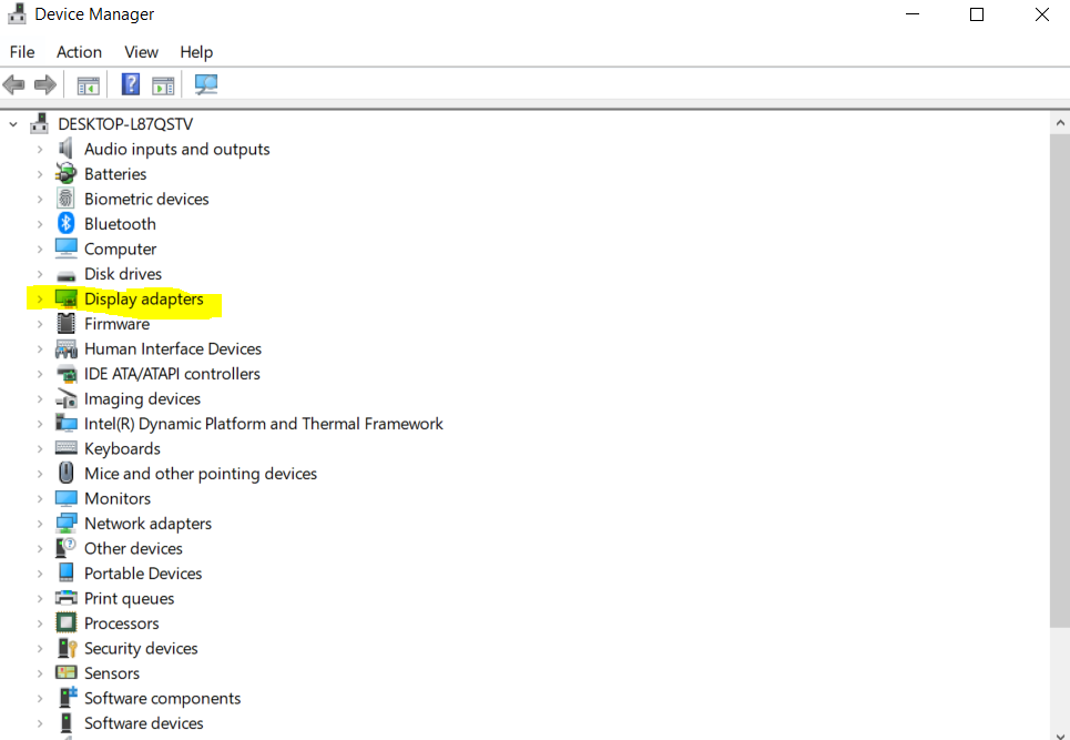 - First and foremost you’ll need to know the model of your graphics card. If you’re not sure which graphics card you have, open Device Manager from your Windows start menu and expand the “Display Adapter” arrow. You’ll find your graphics driver displayed there.