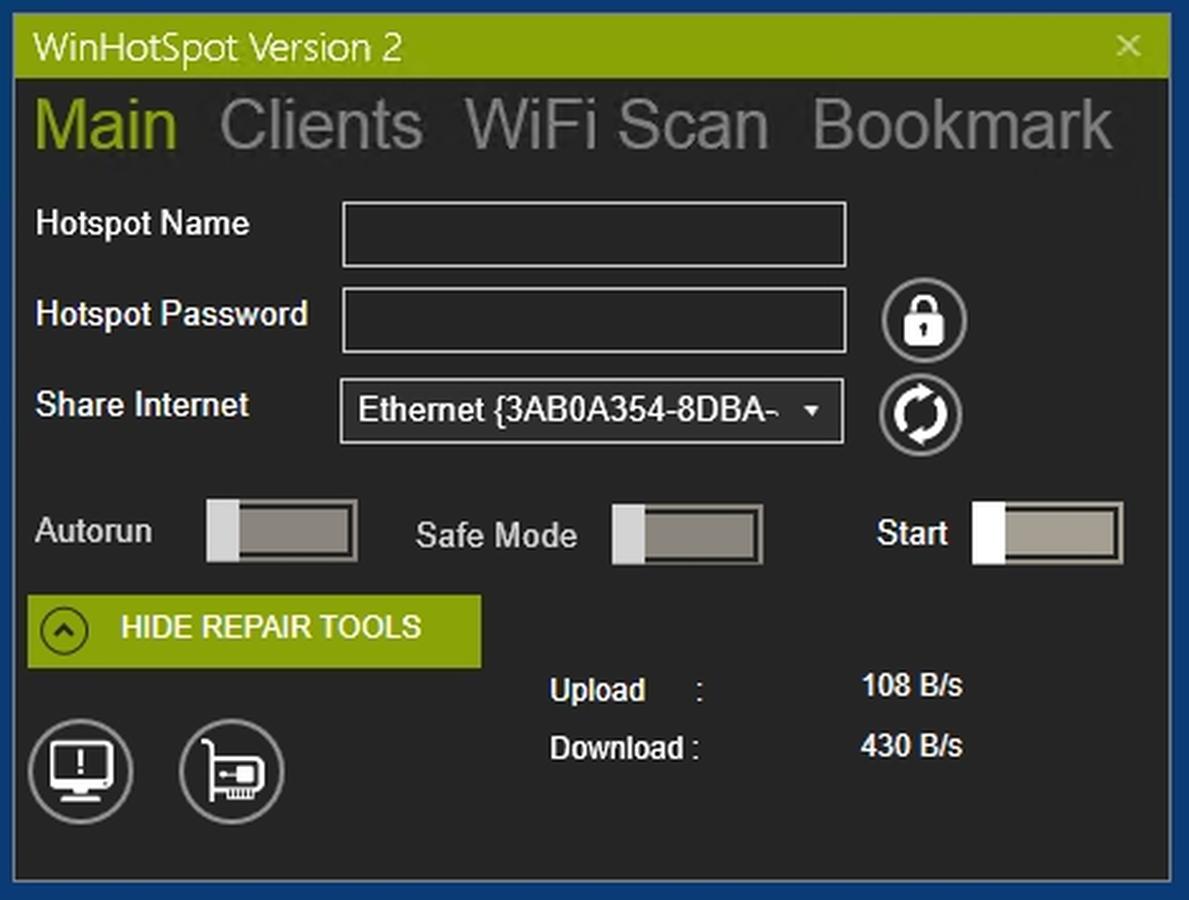mHotspot another great hotspot creating software for both Windows and Linux operating systems. You can choose the name of your hotspot, decide a password having a minimum of 8 characters, and also set the maximum number of clients that are allowed to connect. Moreover, you can track the amount of data being used up in real-time and view the upload and download speeds.