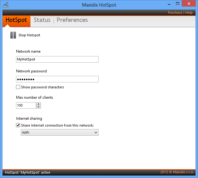 Maxidix Hotspot is a premium WiFi hotspot software that converts your computer’s Wi-Fi adapter into an Access Point. Essentially, Maxidix supports a dual-mode infrastructure that lets your host a Wi-Fi network whilst at the same time allowing you to connect to another Wi-Fi network.