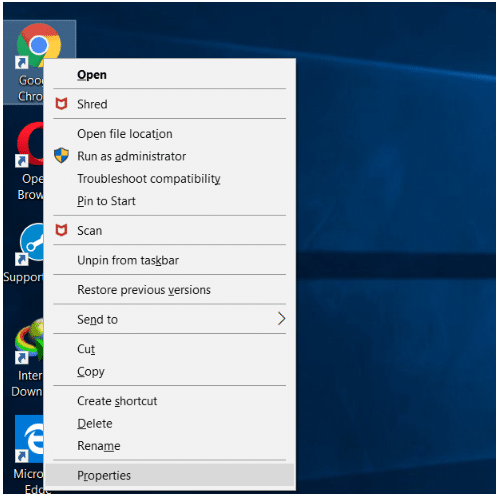 - Create a shortcut of google chrome and choose properties after clicking right-click on it.