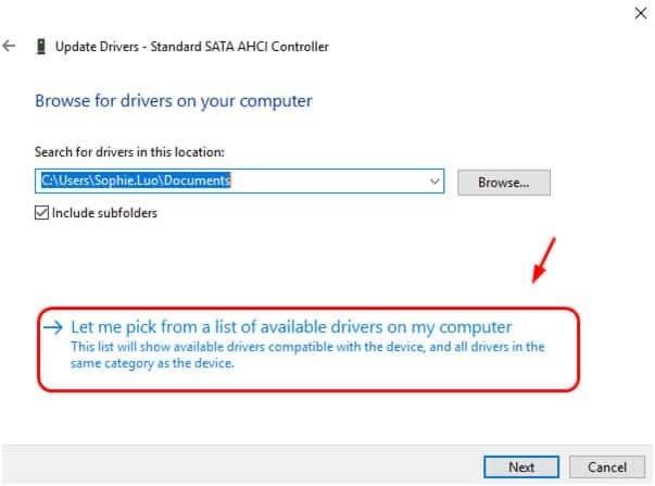 Step 6 - Now click on the option ‘Let me pick from a list of drivers on my computer’.