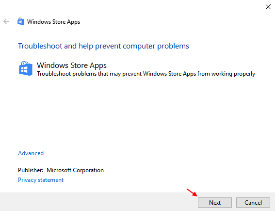 - Click on Next and the troubleshooters will find if any bug is there in Windows Store App or not.
