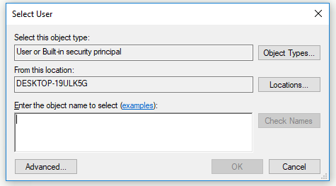 - Under the “Enter the object name to select” entry box, type the name of your account and then click on “Check names” option