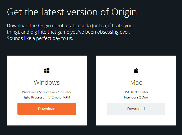 - Now go to the official EA Origin website and download the latest version of Origin client