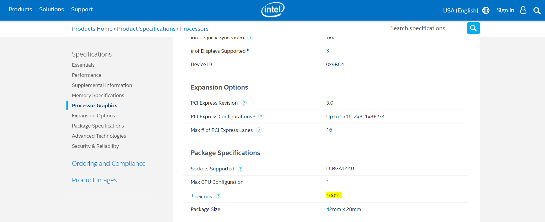 Most computers modern-day computers are packed with Intel processors. If you want to find out your max operating temperature, search for your processor on the Intel’s ARK (Automated Relational Knowledgebase). Just select the “Processors” tab and find your processor or use the search bar. When you reach the specifications page, look for the “Package Specifications” subheading. The T-junction temperature is “the maximum temperature allowed at the processor”, in other words, the maximum operating temperature.