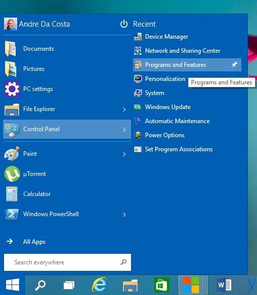 - Click Start and go to Control Panel.