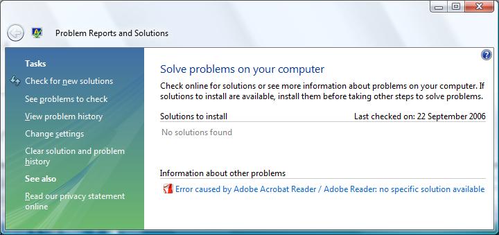- Click on Problem Reports and Solutions.