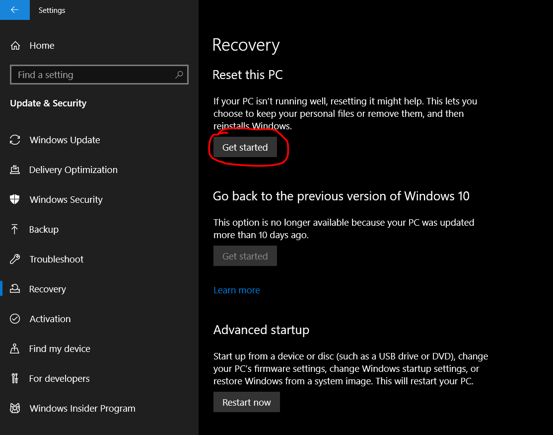 Unfortunately, if none of the methods above have worked, you’ll have to Reset your PC. However, before you do this we recommend you take your computer to official support staff to see if the 0x8024a105 can be fixed by other means. Follow the steps below: