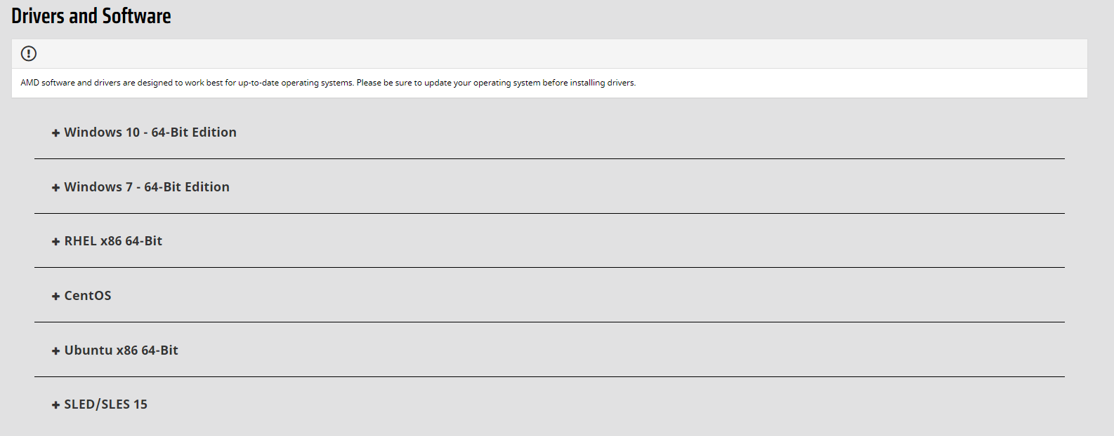 - Next, select the operating system that you’re using. AMD recommends you use the latest version of Windows or Linux to ensure stable performance.