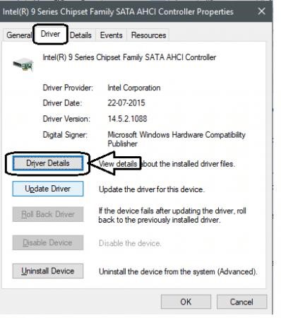 Step 3 - Go to the Driver tab and then click on Driver Details to make sure that you have chosen the correct controller and check if iaStorA.sys is listed as a driver. Once you confirm it, click OK.