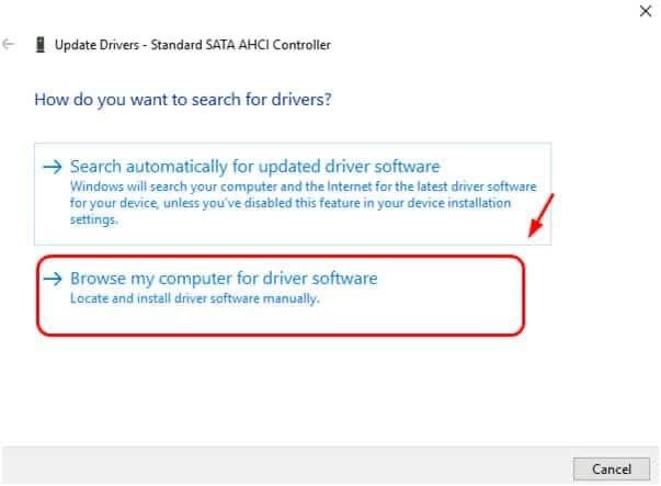 Step 5 – Choose the option ‘Browse My Computer for driver software’.