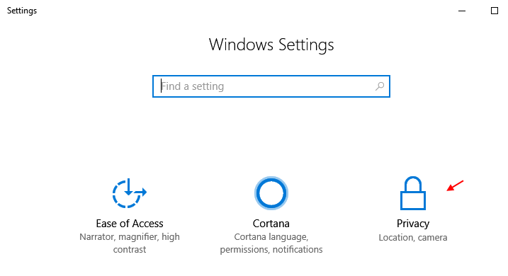 - Now in the privacy, click on the camera from the list of options available in the left-hand side panel.