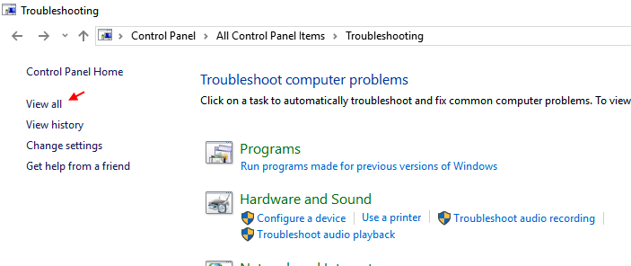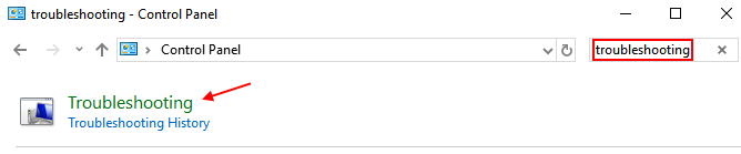 - Open Control Panel and search for Troubleshooting in the search bar.