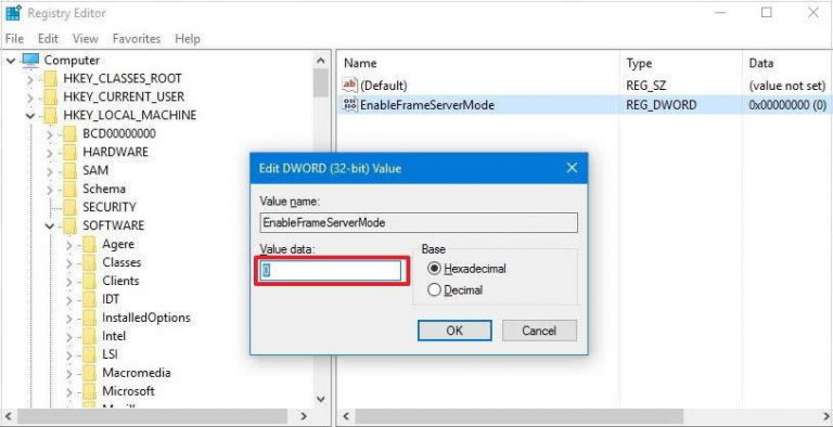 - Rename the latest entry with the “EnableFrameServerMode” name.
