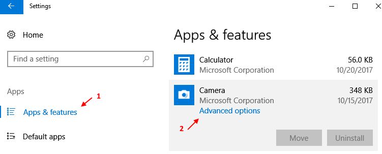 - A new window will appear, now click on the Reset button to reset the Camera application.