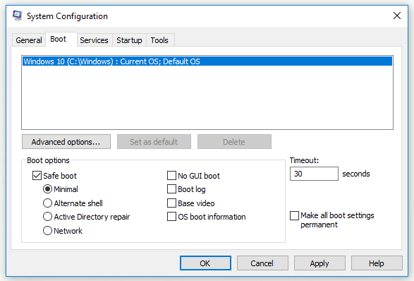 - Checkmark the box next to Safe Mode and click Ok