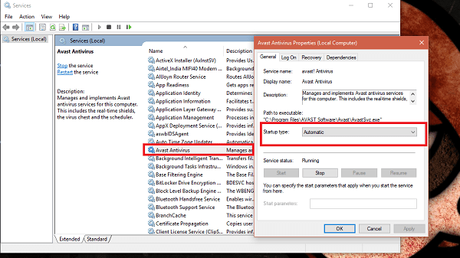 - Locate the Avast Antivirus service from the list