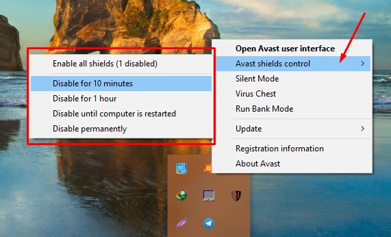 - Right-click on the Avast icon