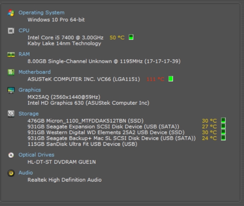 Clicking on the temperature icon will bring up a real-time temperature monitoring graph. Speccy is also great software to learn more about your computer’s specifications. Clicking on the main tabs towards the left of the interface will open detailed specifications for each major hardware component.