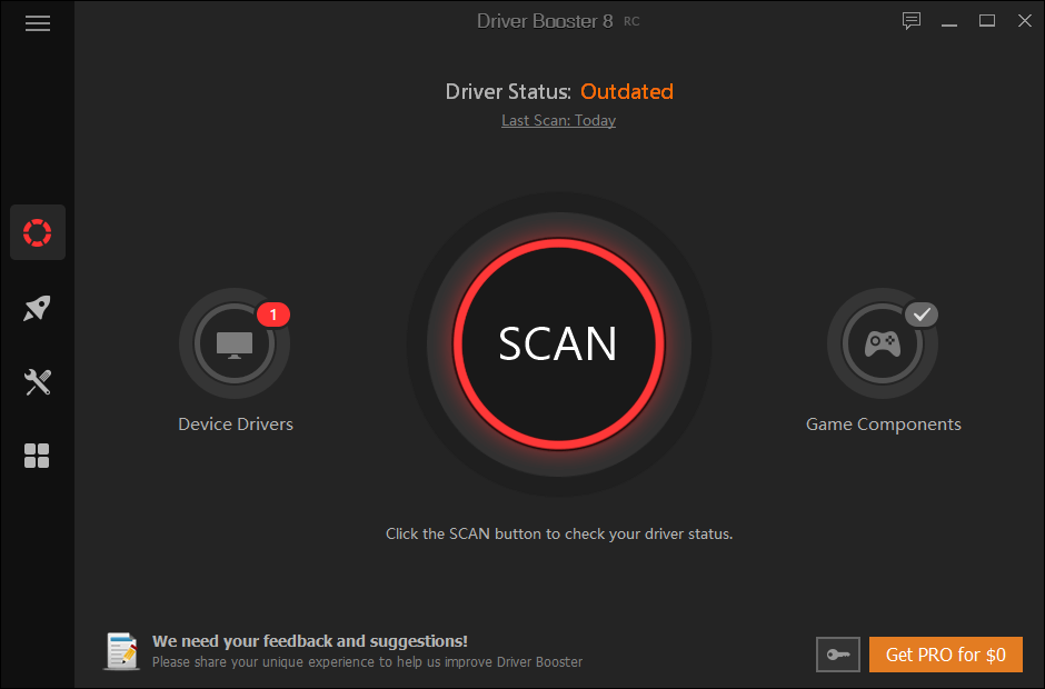 Driver Booster is an easy-to-use software which lets you download and install the driver updates and improve the Windows stability. You may either download the Free version or upgrade to the Pro version.