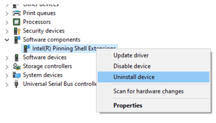 - Right-click on Intel Pinning Shell Extensions from the list and click on Uninstall device