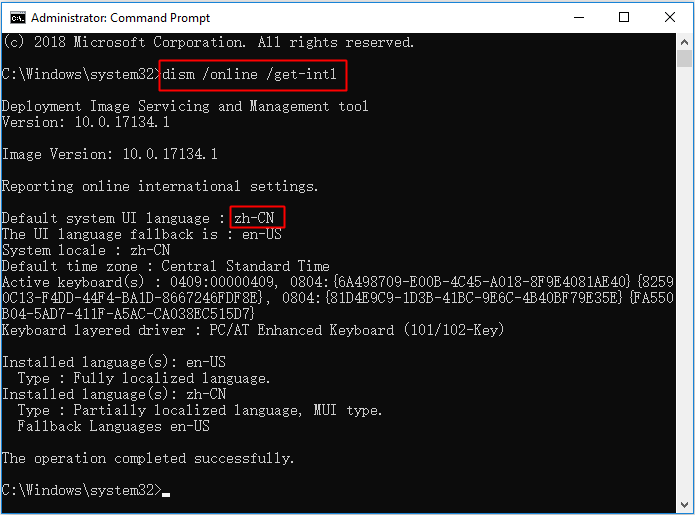 - Type “dsim/online/get-intl and press Enter