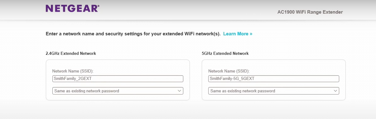 - Once the password is successfully entered, your Netgear extender and router will be linked. The last step is to rename your Netgear extender’s network name if you wish to do so. You can leave it as the default name if you want. We recommend you leave the “_EXT” at the end to identify it as an extender connection.
